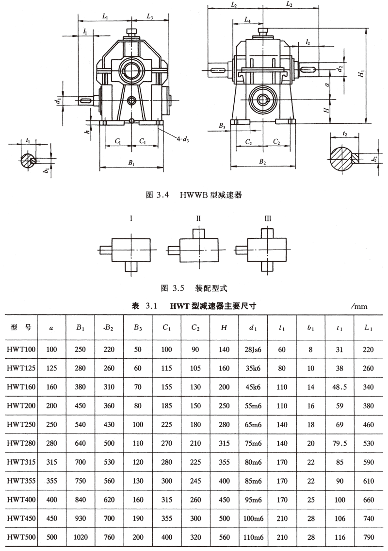 (1)HWT型—蝸桿在蝸輪之上鑄造機體和機蓋直廓環面蝸桿減速器;
