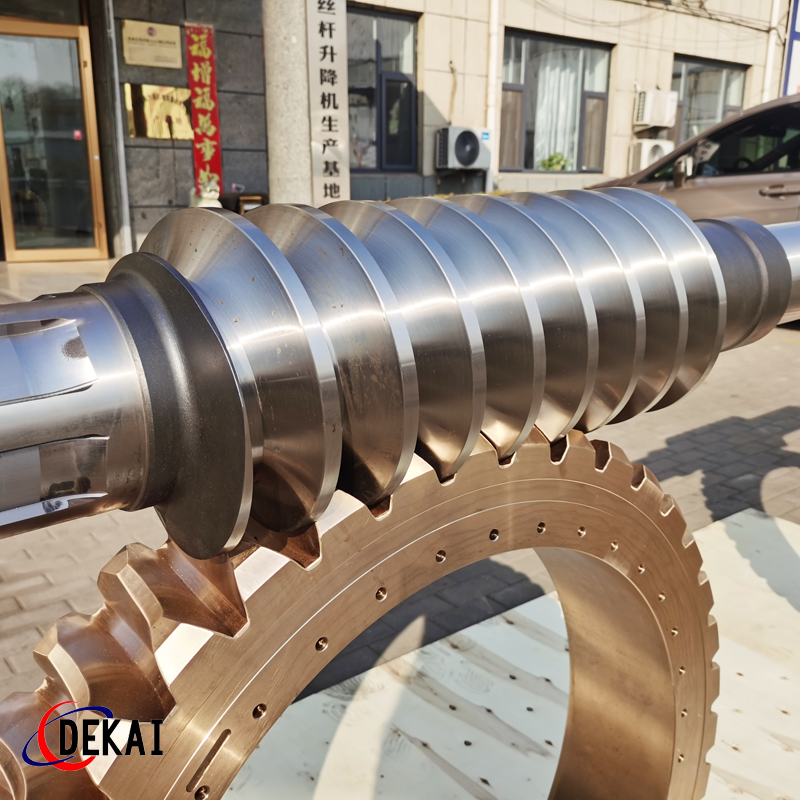 雙導程圓柱蝸桿傳動的工作原理與普通圓柱蝸桿傳動沒有本質不同。在沿蝸桿軸的中心剖面內,同樣的蝸桿齒形相當于齒條,蝸輪相當于與它嚙合的齒輪。雙導程蝸桿傳動與普通圓柱蝸桿蝸輪傳動的區別在于:雙導程圓柱蝸桿蝸輪的左右齒面具有不相等的導程,而同一側齒面的導程則相等。假如沿雙導程圓柱蝸桿的分度圓柱展開,蝸桿的兩個齒面上有兩個不相等的導程,導致了蝸桿的軸向齒厚沿其軸線從一端到另一端按一定的比例增大,而同一側齒面的導程則相等。當蝸桿沿軸向移動時,他們之間的嚙合側隙也隨之改變。當一對雙導程蝸輪副運轉很長時間后,因磨損造成移動時,它們之間的嚙合側隙也隨之改變。當一對雙導程蝸輪副運轉很長時間后,因磨損造成齒面嚙合側隙加大而破壞了運動的平穩性,此時將雙導程圓柱蝸桿沿齒厚減薄的方向位移一段軸向距離,嚙合側隙則隨之減小或完全消除,隨之恢復了運動的平穩性,而無須增加新的結構或改變中心距。這就是雙導程圓柱蝸桿傳動的工作原理。