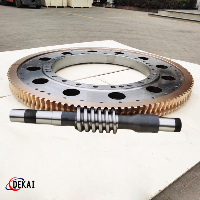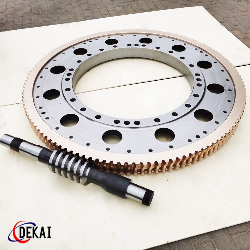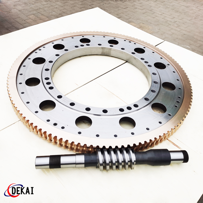 德州德凱減速傳動機械有限公司采用雙蝸桿對消隙原理開發生產的精密蝸輪蝸桿副,主要用于大型機床工作臺的驅動,高精密分割器等無間隙圓周運動精確定位場合。該蝸輪副中心距最大可做到2000mm,單節速比可做到1-365同時不產生回程間隙。