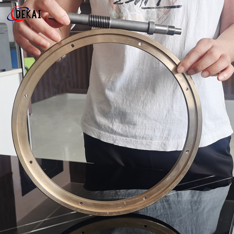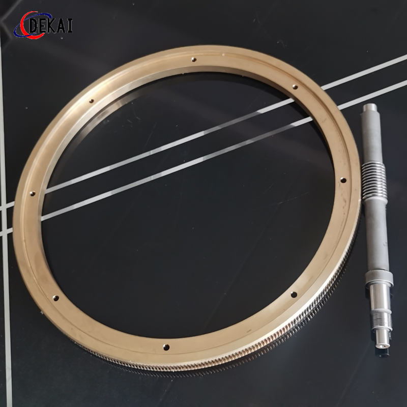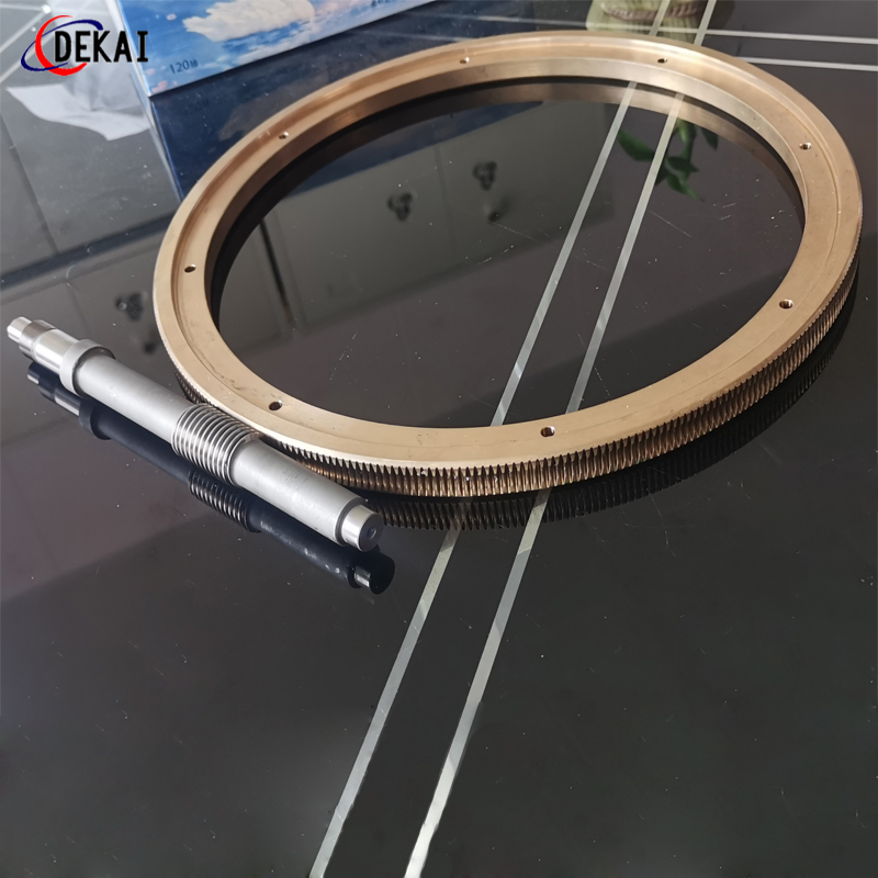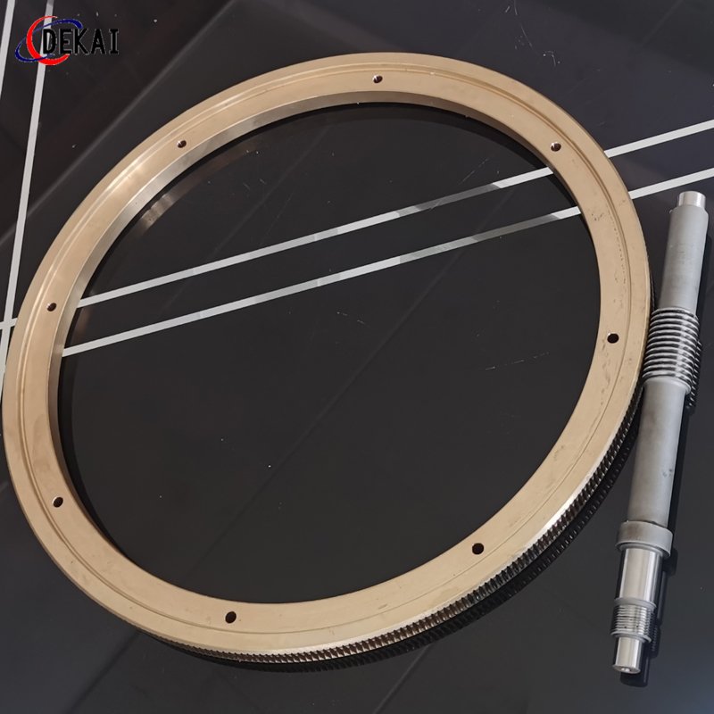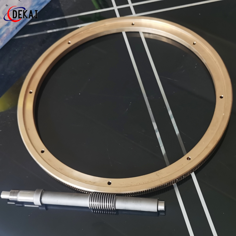 蝸輪系統(tǒng):材質(zhì):蝸輪特殊高強(qiáng)力鋁青銅合金;蝸桿:38CrMoAl合金鋼,正常化后滲碳HRC60以上。